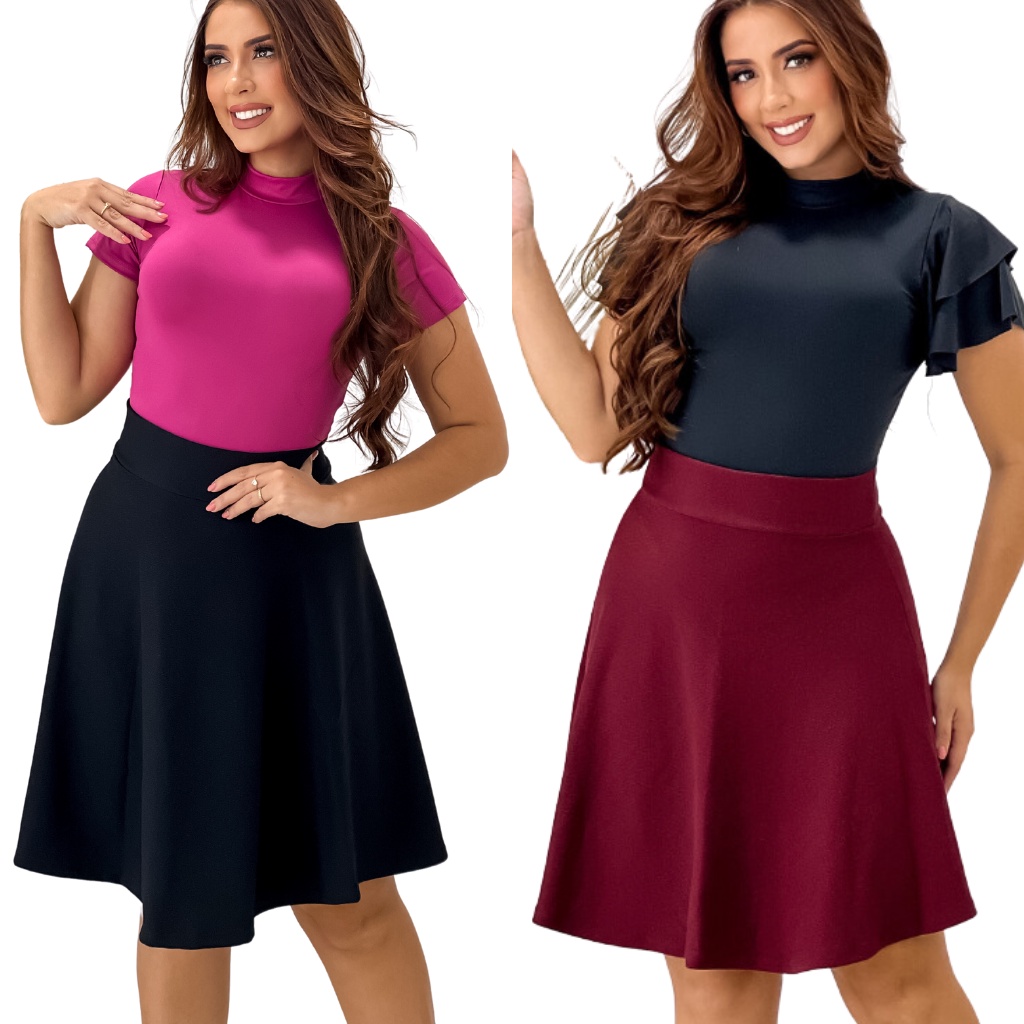 Saia Valeria Midi Gode Crepe Alfaiataria Forro 5 Elastano Very well made.