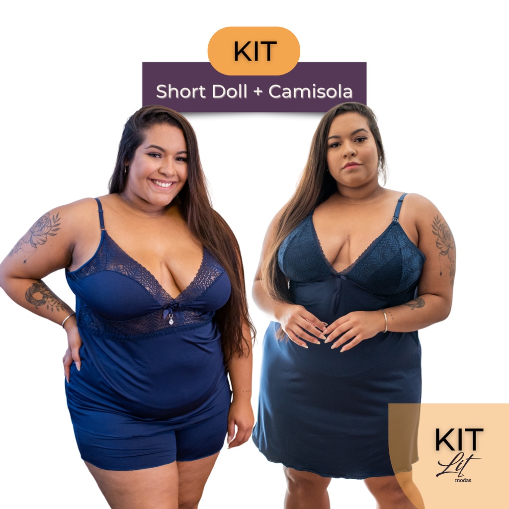 KIT 2 Pe as Camisola e Short Doll Plus Size com Renda Confort vel Tamanho Especial 50 52 54 56 58 Linha Noite Roupa de Dormir Pijama Grande LIT Very well made.