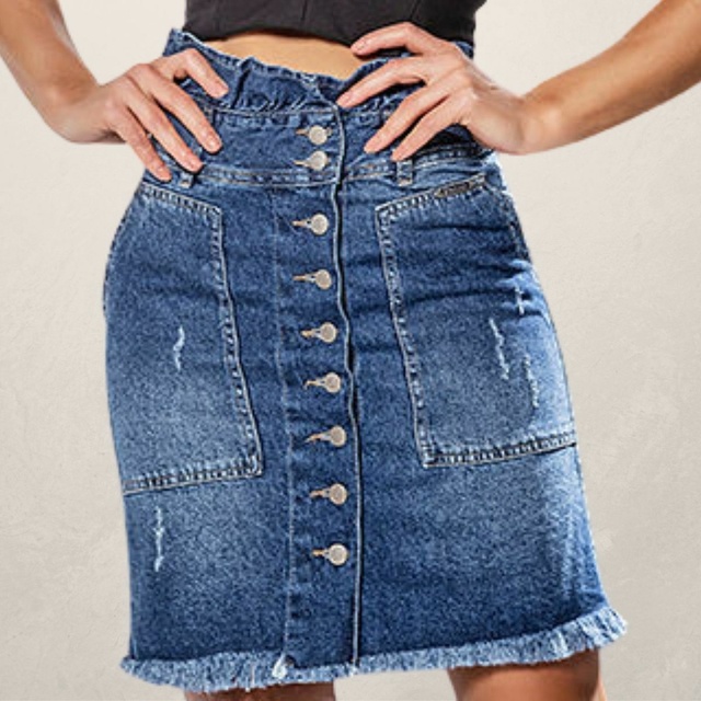 Quintess Saia Clochard Jeans Cintura Alta com Bolsos Moda em Very well made.
