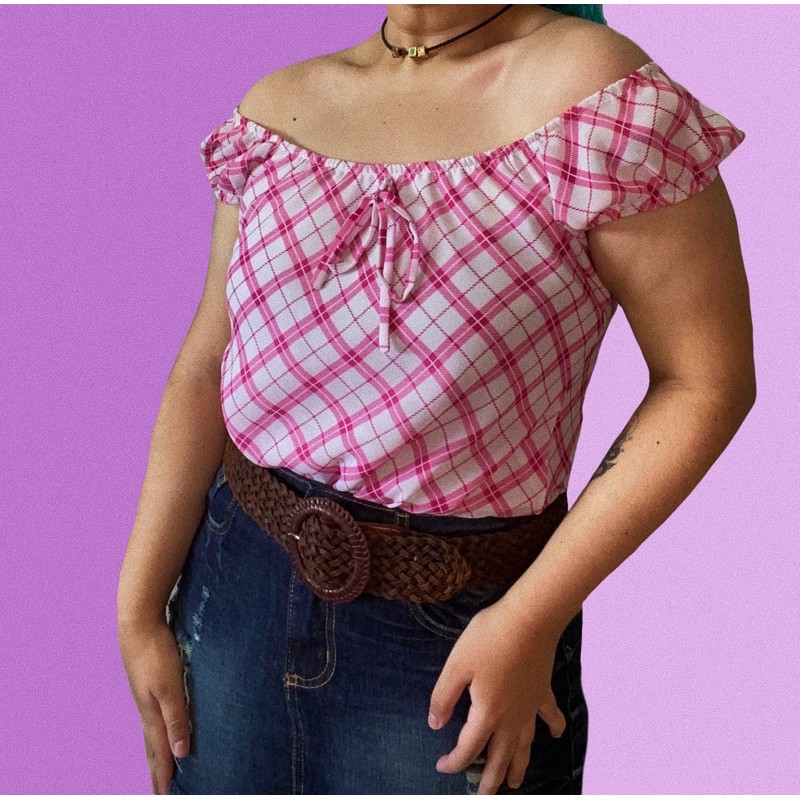Saia Jeans Blusa Xadrez rosa e Cinto largo brech bazar vintage usado aesthetic cottagecore Very well made.