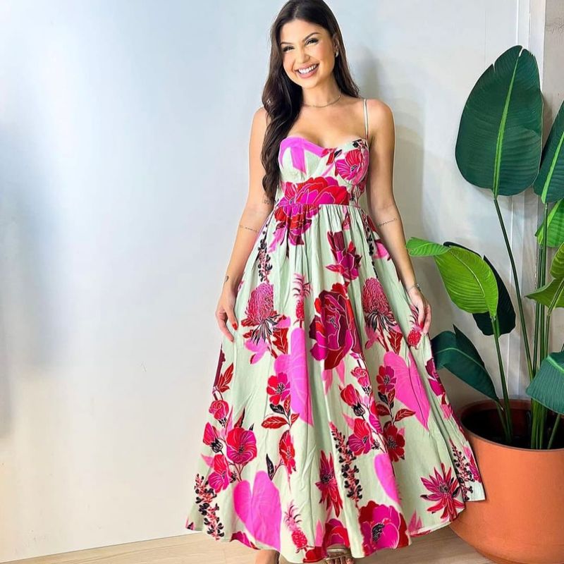 Vestido longo Jardim De Verao Amarelo Alcinha Estampado Farm Very well made.