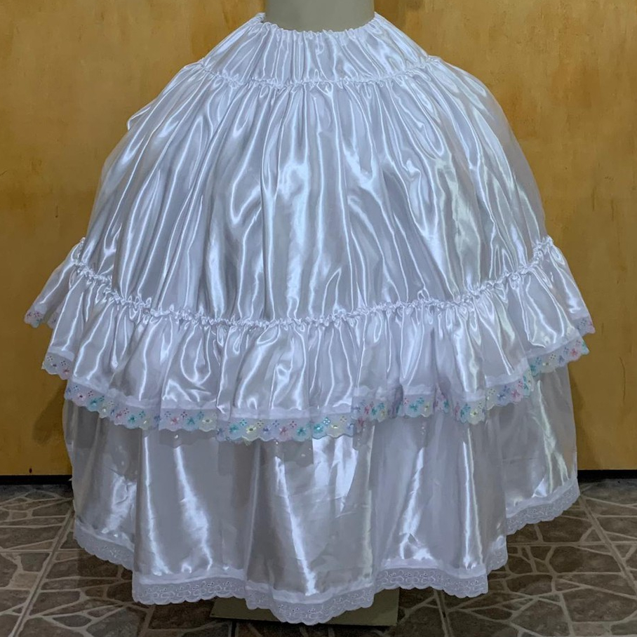SAIA DE CETIM BRANCO COM 1 CAMADA DE BABADO COM BORDADO INGL S Very well made.