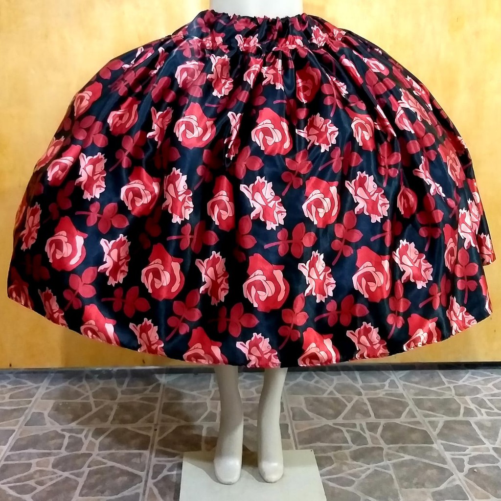 SAIA DE CETIM ESTAMPADO FLORAL PRETO COM FLORES VERMELHA ALARANJADA POMBA GIRA MARIA UMBANDA E CANDOMBL Very well made.