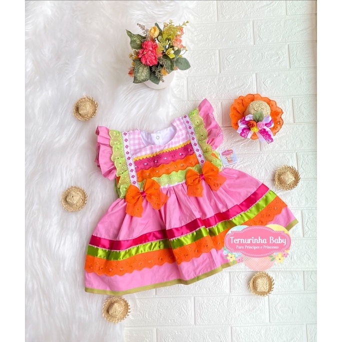 Vestido Caipira Beb E Infantil Com Chap u Vestido Junino Beb E Infantil Very well made.