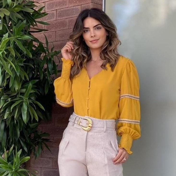 Blusa Feminina Social Tecido Musseline com Decote V e Rendas Very well made.