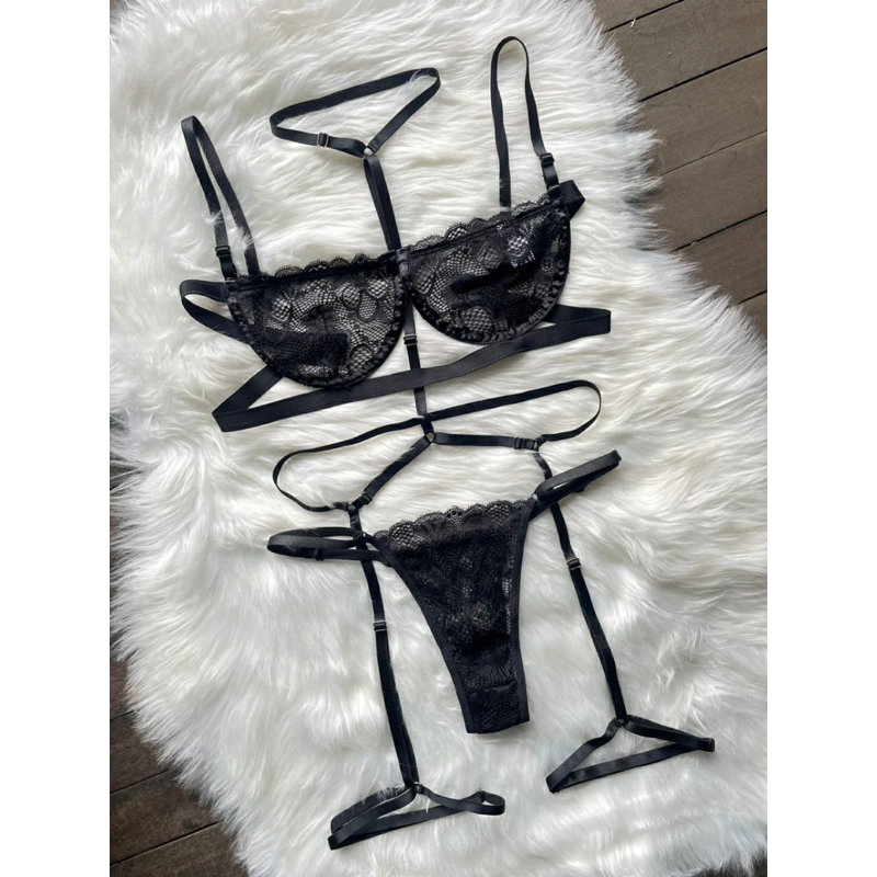 Conjunto Lingerie Renda Preto El stico Lizlu Modas Very well made.