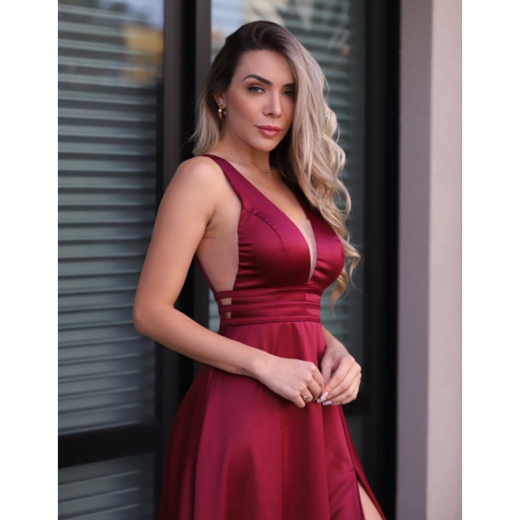 Vestido de festa acetinado decote v madrinha casamento Shopee Very well made.