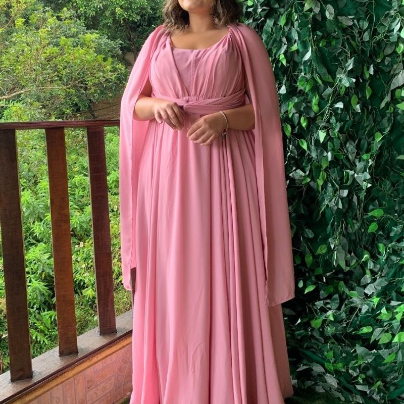 Vestido de Festa Longo Madrinha Multiformas V rias Amarra es Plus Size Rosa Chiclete Tamanho G Vestido de Festa Feminino Tnm Collection Nunca Usado Very well made.