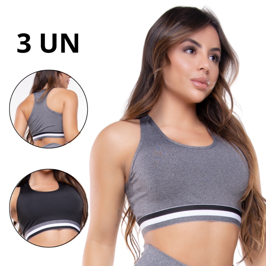 KIT 3 Top Academia Sem Bojo Al a Roupa Moda Fitness Atacado Roupa Feminina Gin stica Liso Crossfit Very well made.