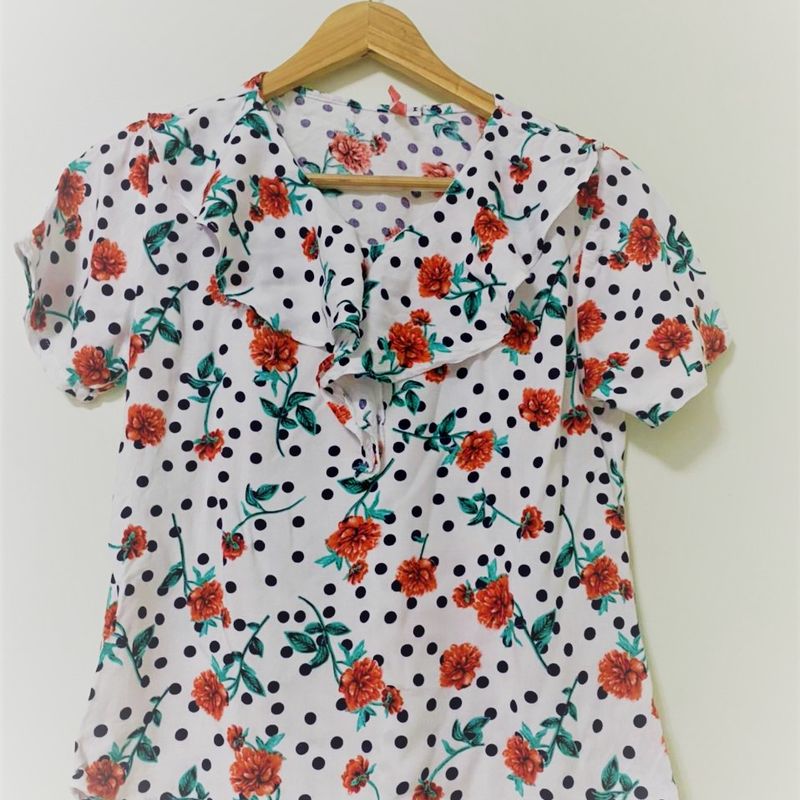 Blusa Manga Curta Moda Evang lica Blusa Feminina Floratta Usado Very well made.