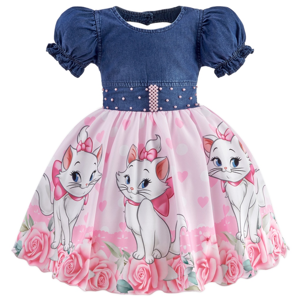Vestido Infantil Jeans Saia Rosa Gatinha Marie 1 ao 12 Very well made.