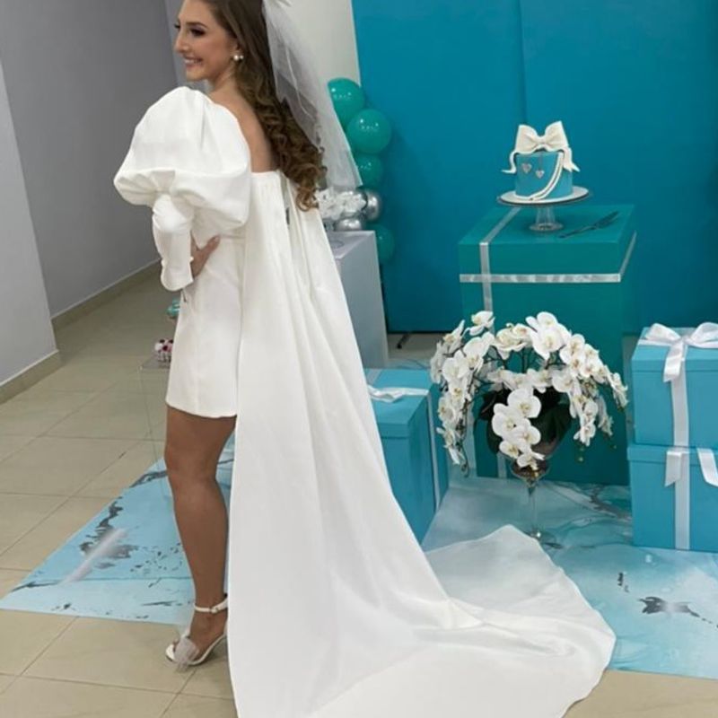 Vestido de Noiva Curto com Calda e Manga Bufante Vestido de Very well made.