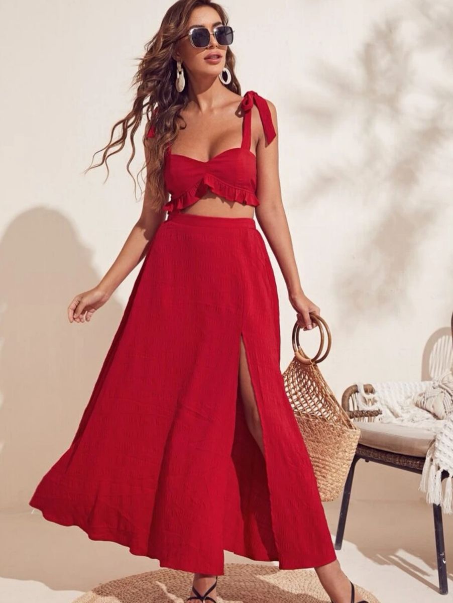 Conjunto Vermelho Cropped e Saia Longa Ver o Saia Feminina Shein Very well made.