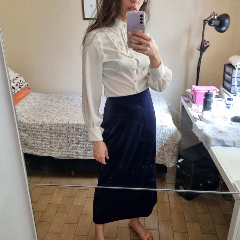 Saia Longa Veludo Azul Marinho Saia Feminina Nunca Usado Very well made.