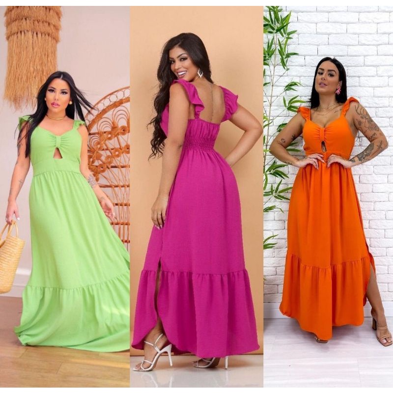 Vestido Feminino Longo Babado Fenda Lil s Lala Dubi Vestidos de Very well made.