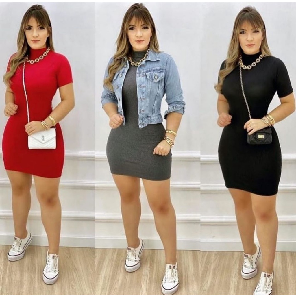 Vestido gola alta manga curta canelado Very well made.