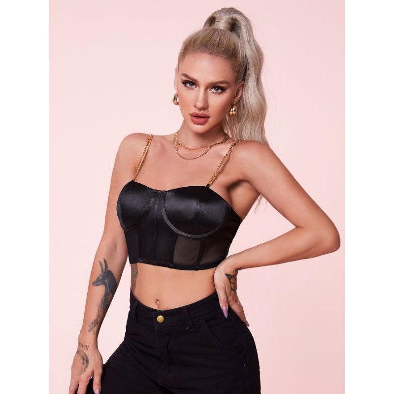 Tank Top Cropped Al a de Metal Corrente Corpete Corselete Preto Festa Balada Renda Shein Aesthetic Vintage Very well made.