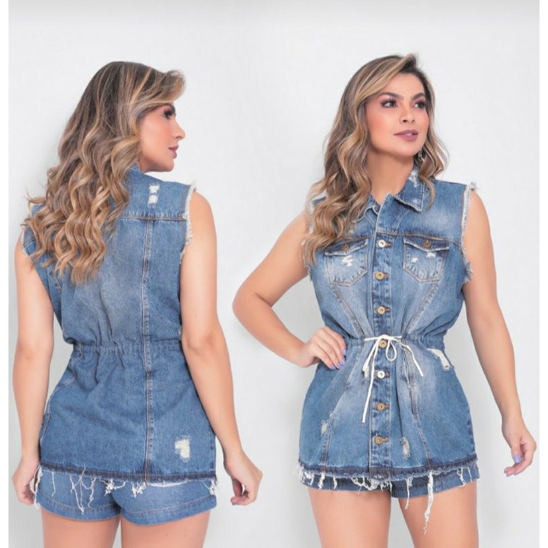Colete Feminino Jeans Premium Color Feminino Alongado sem Manga Very well made.