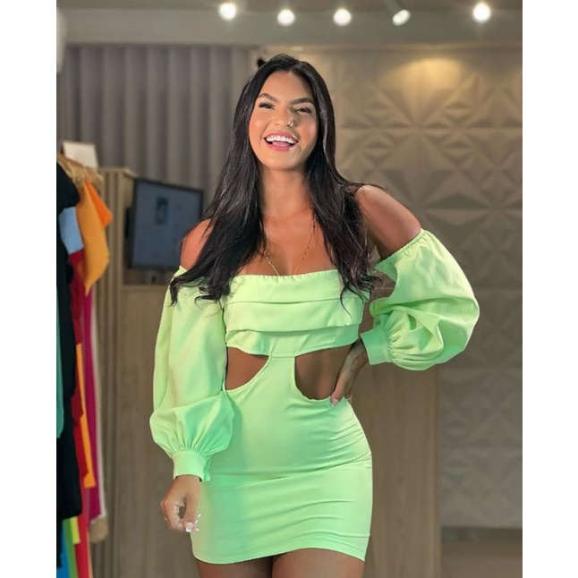 vestido Feminino verde gringa alfaiataria manga longa colado Balada Very well made.