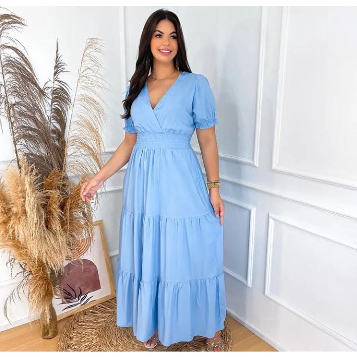 VESTIDO FEMININO GOLA TRANSPASSADA EM CRPE TWILL MODA EVNGELICA Very well made.