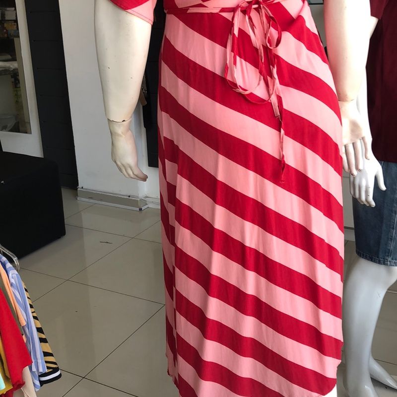 VESTIDO DZARM MIDI LISTRADO EM MALHA DE ALGOD O COM AMARRA O Very well made.