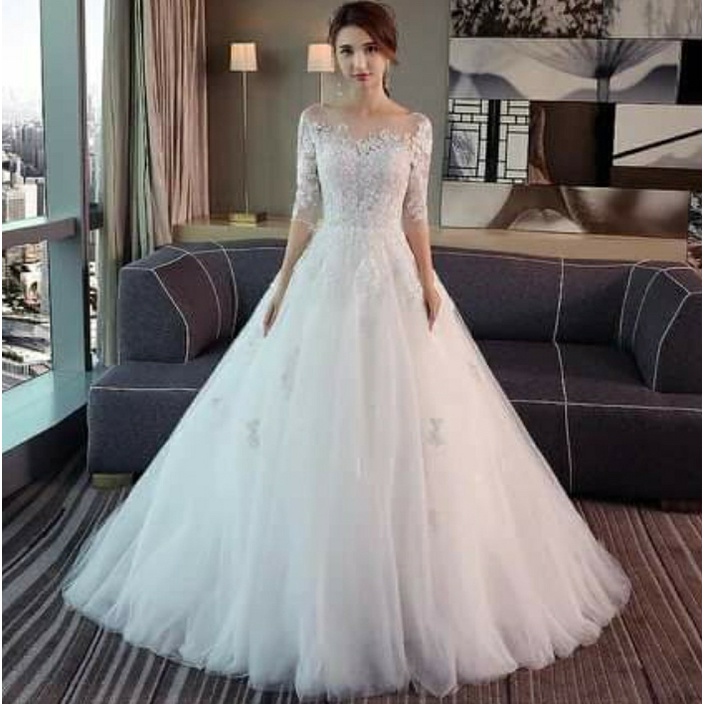 Vestido de Noiva Casamento Luxo Manga 3 4 Branco LX100 Shopee Brasil Very well made.