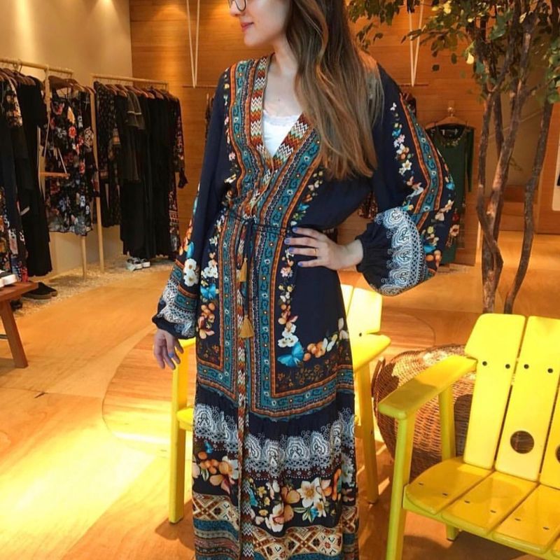 Vestido Longo Farm com Manga Segredo Azul P Vestido Feminino Farm Nunca Usado 41780216 enjoei Very well made.