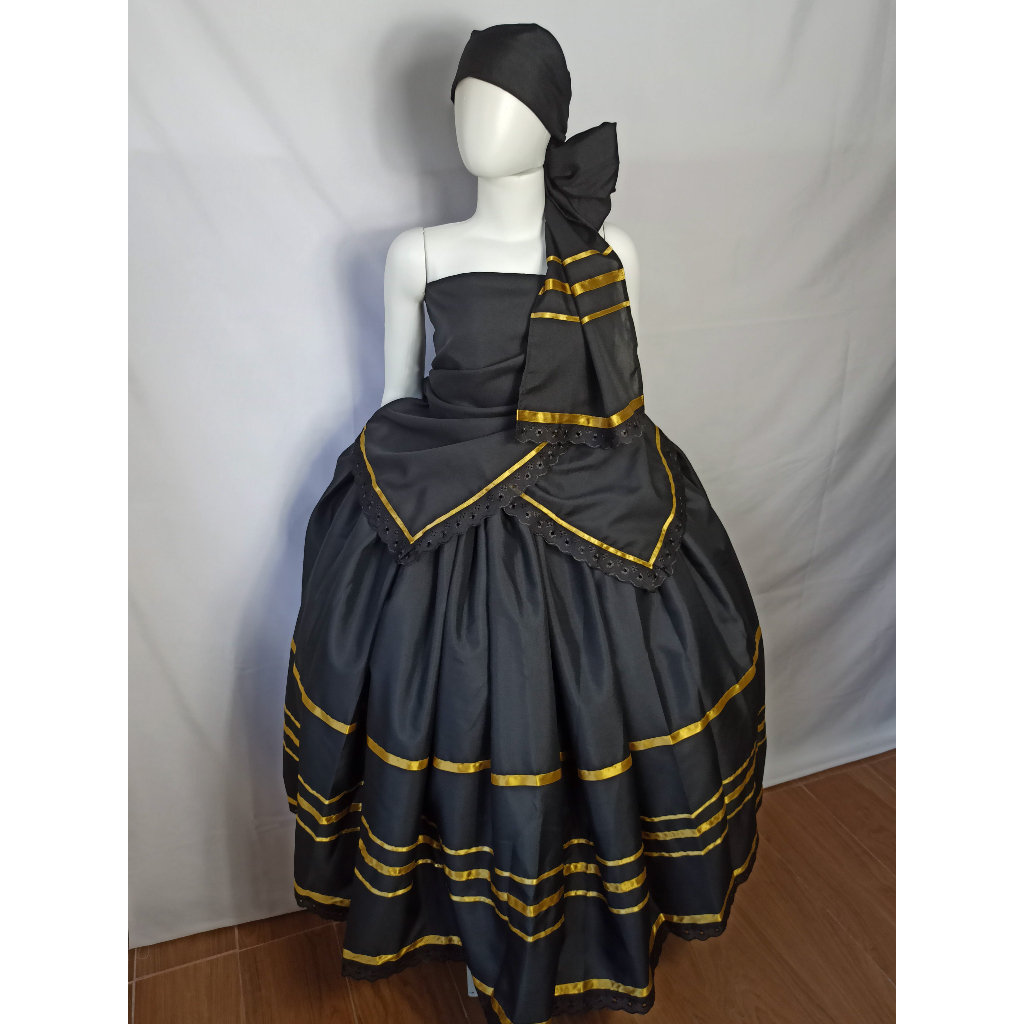 Saia de Pomba Gira 7 babados preta com dourado Trajes Dona Ana Very well made.