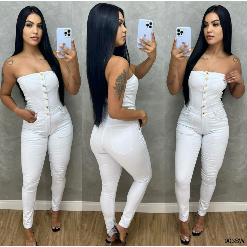 Macac o Jeans Branco Sem Al a Longo com Lycra Pimenta Doce Very well made.