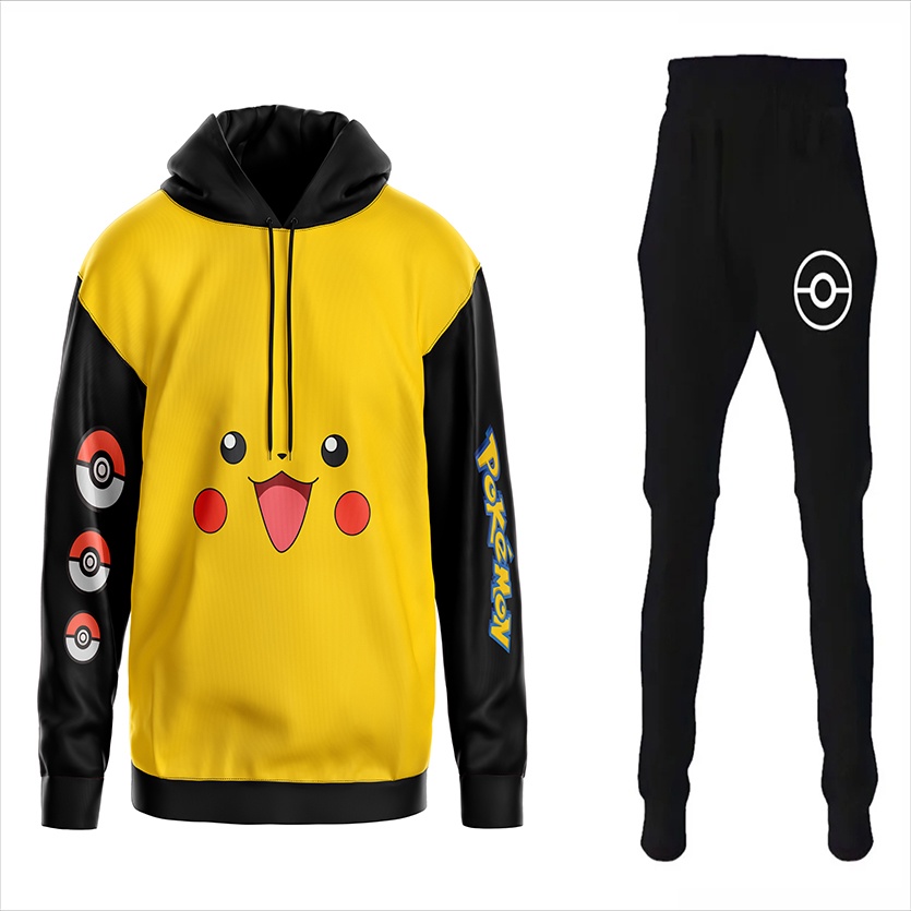Conjunto Moletom Pokemon Adulto e Infantil Turma Pikachu S rie Anime Blusa Cal a Com Capuz Full Top Very well made.