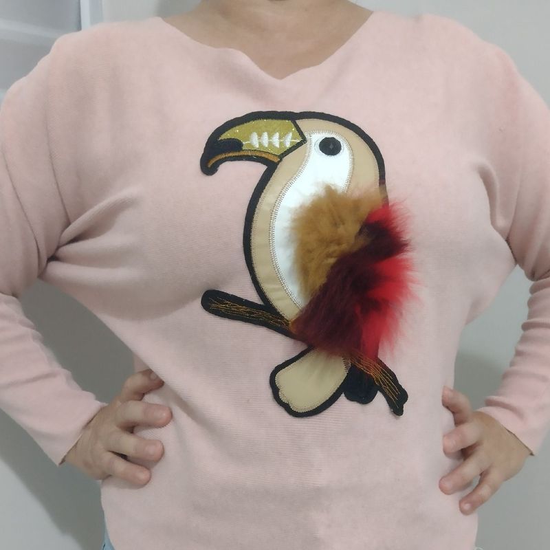 Blusa de Frio Rosa Tucano de Pompom Blusa Feminina Usado Very well made.