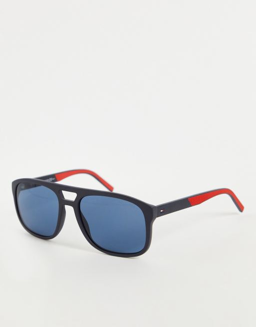 Tommy Hilfiger Aviator zonnebril in marineblauw en rood ASOS Very well made.