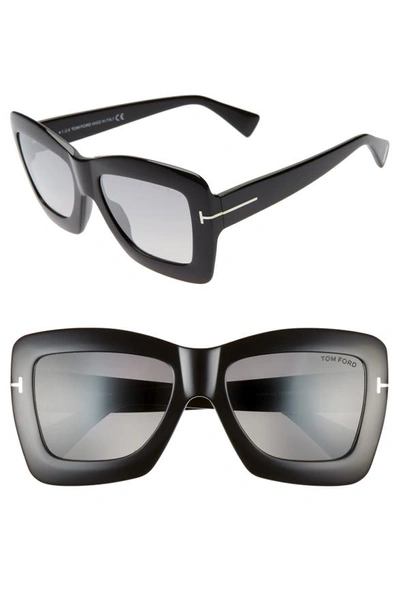 Tom Ford Women s Hutton Sunglasses Shiny Black Smoke Mirror Very well made.