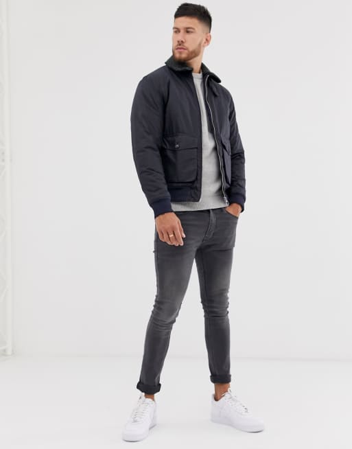 Barbour Goosall wax jacket with borg collar in navy Very well made.