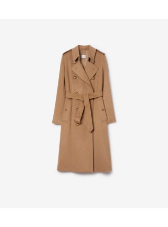 Long Cashmere Blend Kensington Trench Coat in Dark charcoal blue Women Burberry Official Very well made.