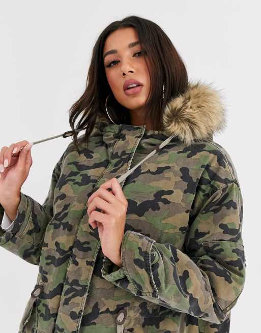 Long Camouflage Hooded Zipper Women s Overcoat Camouflage Very well made.