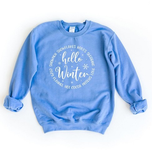 Simply Sage Market Women s Graphic Sweatshirt Hello Winter Circle M Carolina Blue Very well made.