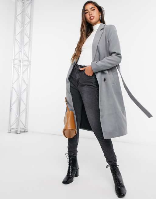 River Island Light Grey Faux Suede Longline Trench Jacket in Gray Very well made.