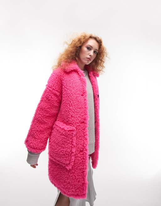 Bright Pink Soft Touch Longline Borg Coat PrettyLittleThing USA Very well made.