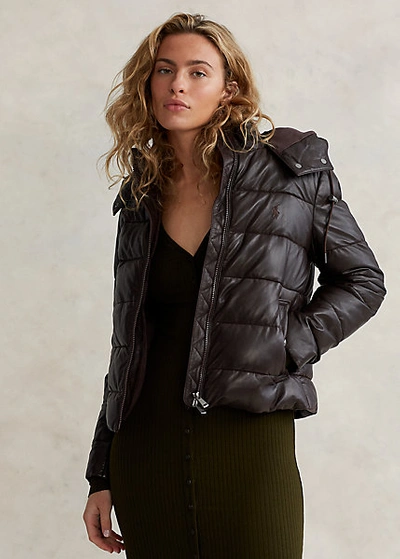 Belmont Lambskin Hooded Coat In Brown Very well made.