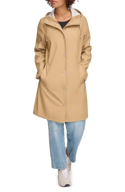 Ladies Solid Khaki Mid Length Basic Rain Coat with Removable Hood Very well made.