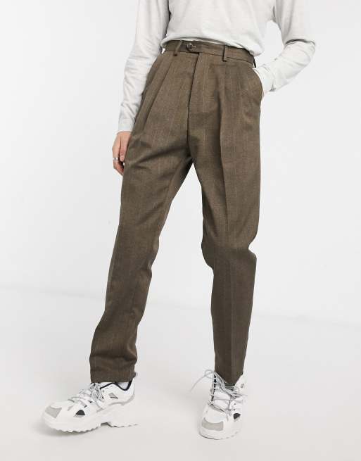 ASOS DESIGN high waist wide leg pants in brown stripe Very well made.
