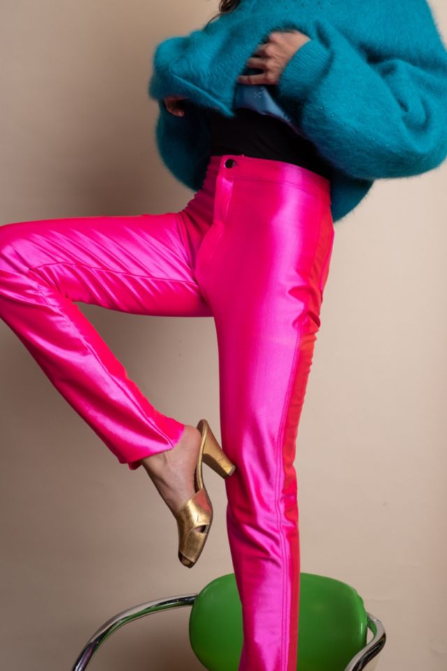 Candy Pink Metallic Disco Pants With Tailored Pin Seams Etsy UK Very well made.