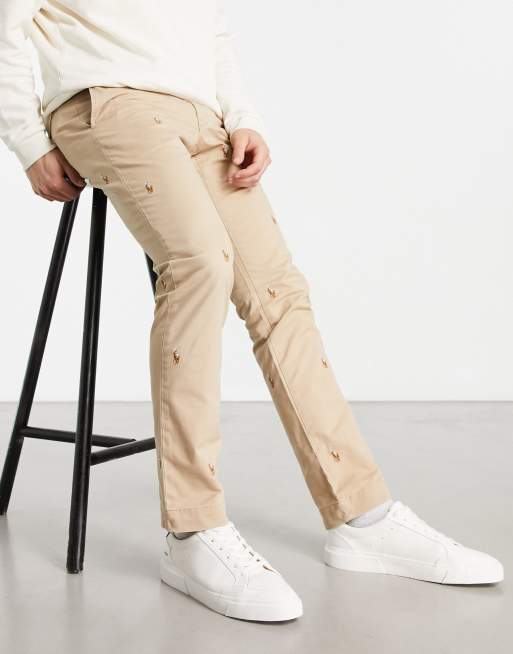 Polo Ralph Lauren all over pony logo slim fit chinos in beige Very well made.