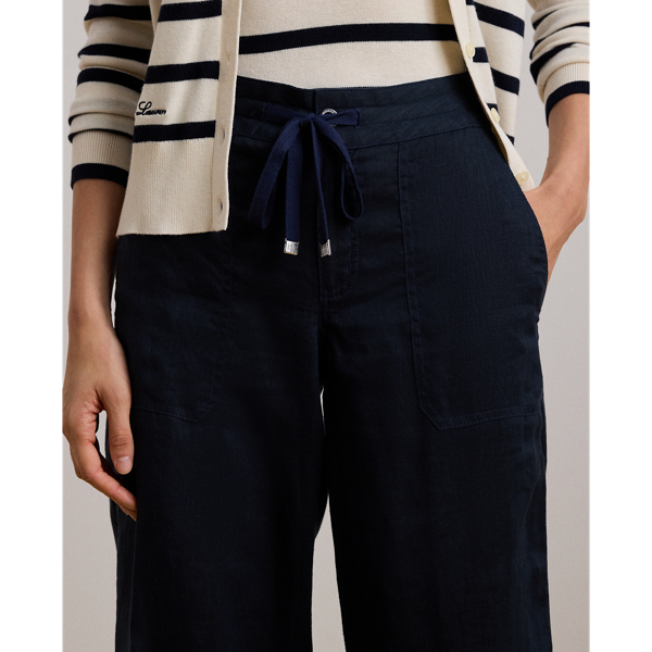 Lauren Ralph Lauren Linen Pants Women 6 Wide Leg 100 Linen Navy Blue Pants Very well made.