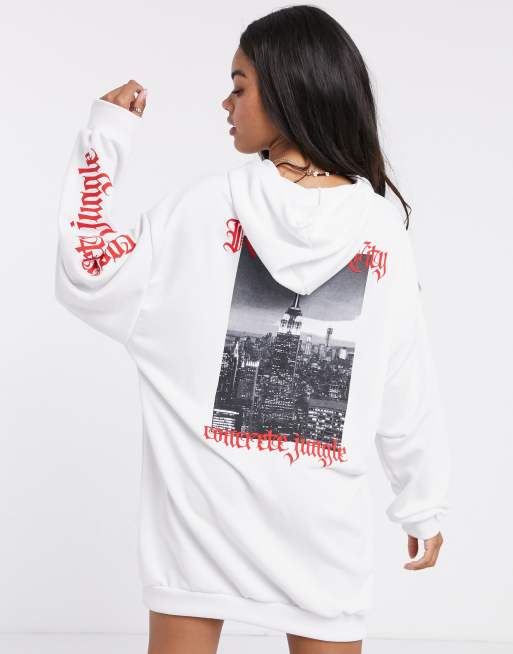 ASOS DESIGN mini hoodie sweat dress in white with red New York typography Very well made.