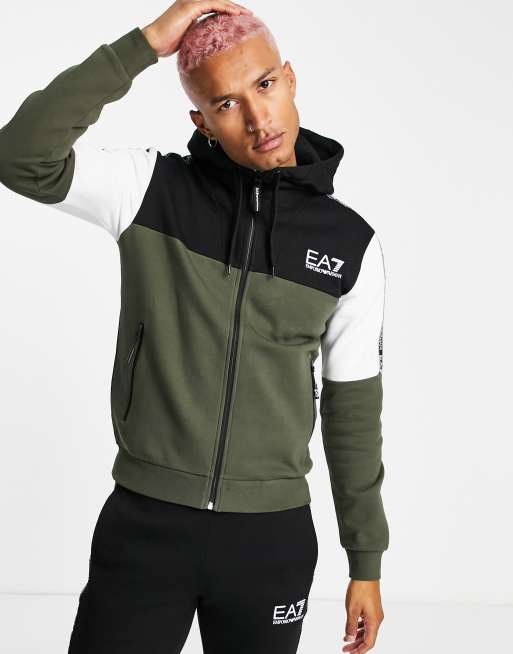 Armani EA7 Train Athletic color block zip up hooded fleece tracksuit in gray Very well made.