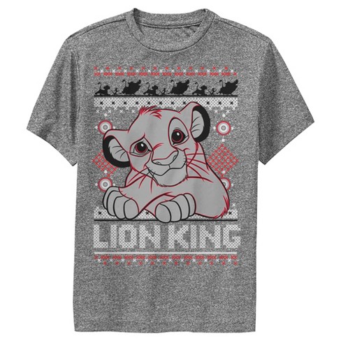 Boy s Lion King Simba Ugly Christmas Sweater Print Performance Tee Charcoal Heather Large Very well made.