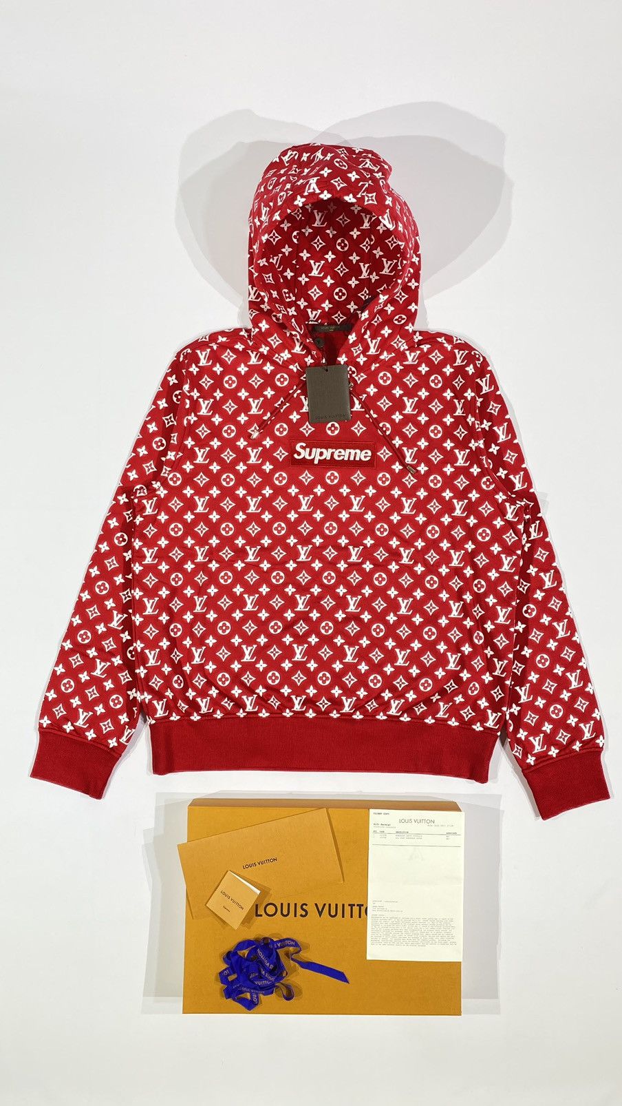 Louis Vuitton Supreme Logo Box Hoodie Monogram Red TC Very well made.