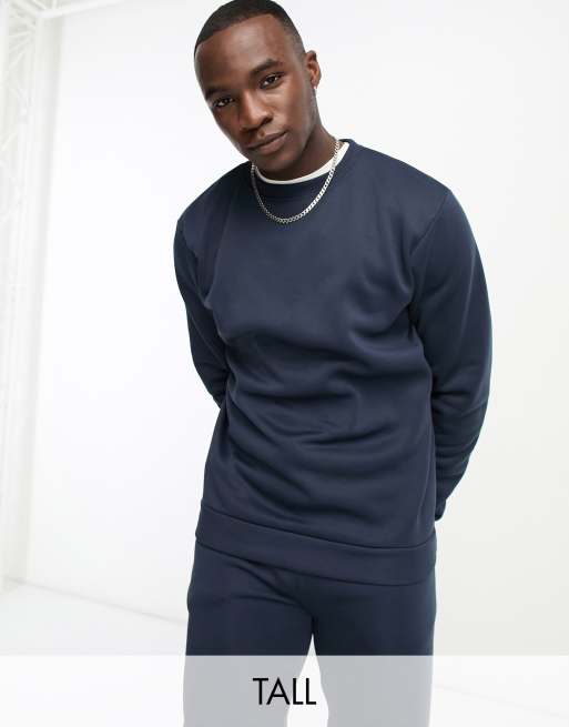 DTT Tall crew neck sweatshirt sweatpants tracksuit set in navy Very well made.